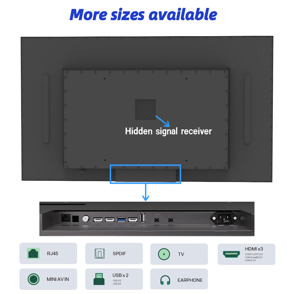Duurzaamheid van commerciële kwaliteit: Gebouwd met hoogwaardige materialen en een robuuste behuizing, is deze buiten-tv ontworpen voor langdurig commercieel gebruik en ondersteunt 24/7 continue werking zonder afname van de prestaties.Het is gemakkelijk te installeren en wordt geleverd met een plug-and-play mainboard voor een probleemloze installatie (montagebeugel en verzendmaterialen zijn niet inbegrepen).